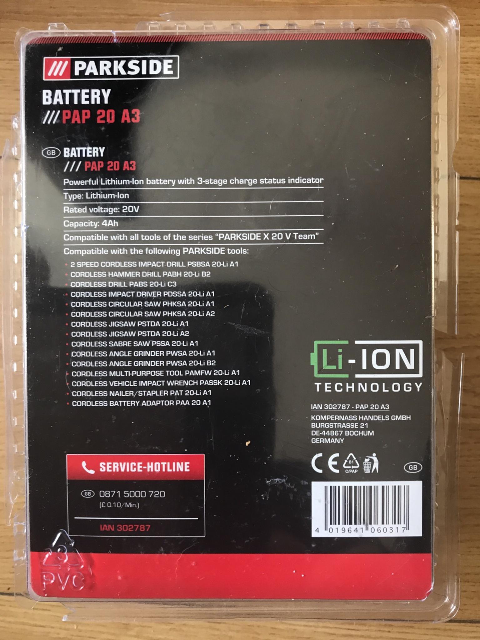 Parkside pap 20 v a3 4ah.